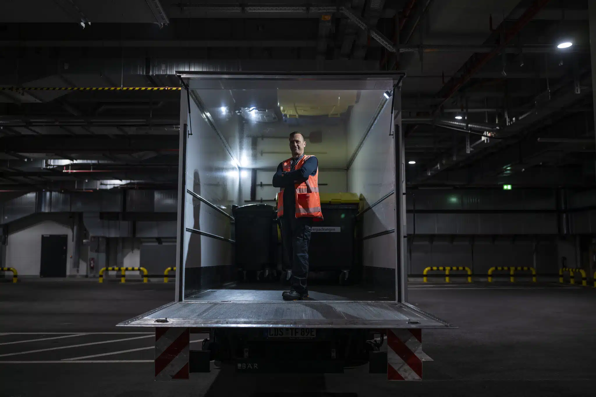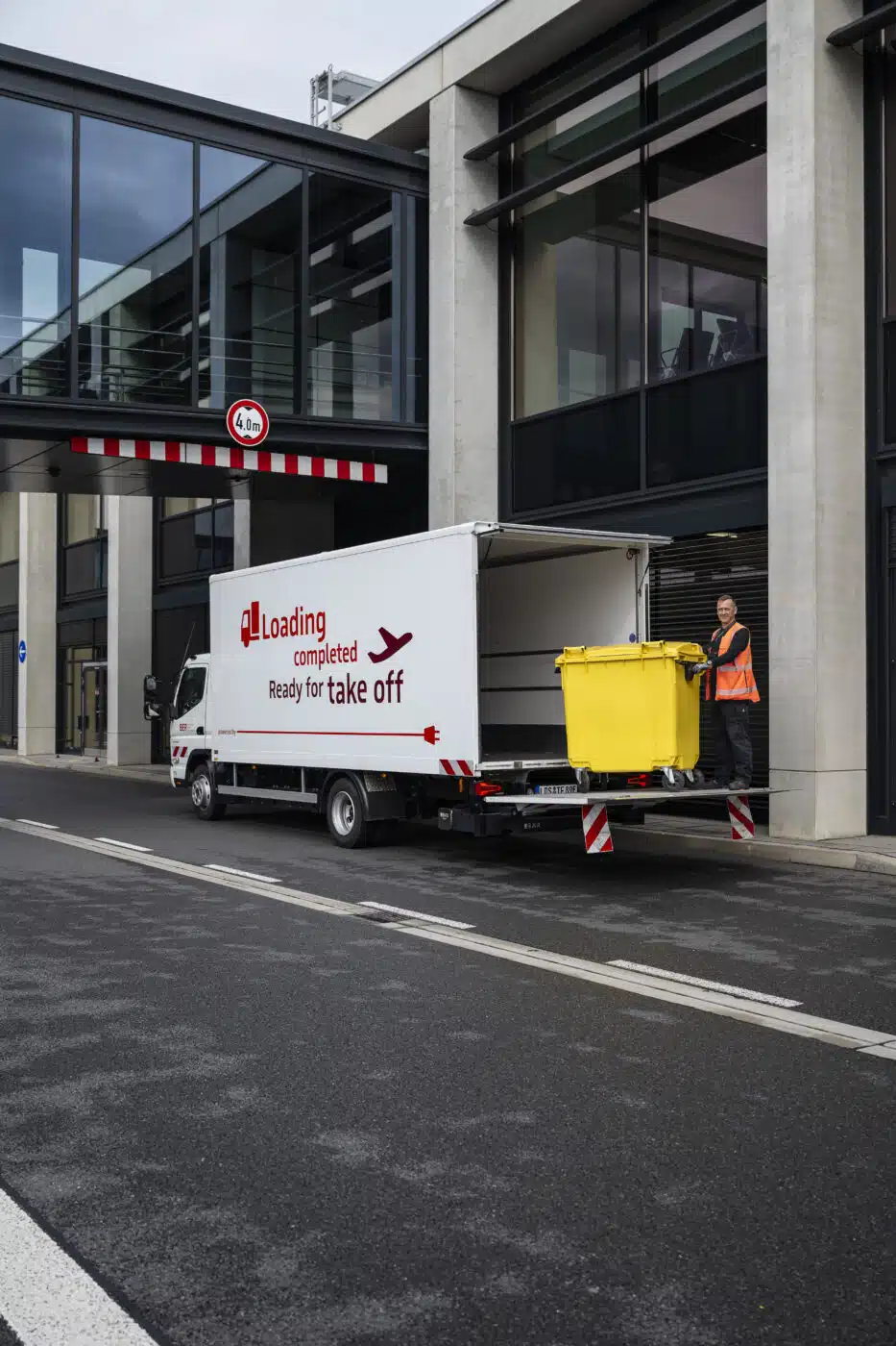 Spojrzenie na bilanse pokazuje, że w tym okresie gospodarka odpadami przetworzyła łącznie prawie 3300 ton odpadów, podzielonych na 39 rodzajów, zwanych frakcjami. Płynna, elastyczna, szybka, skuteczna i wydajna logistyka wewnątrzzakładowa jest obowiązkowa w świetle tych liczb. Fakt, że od maja 2024 roku działa wyłącznie elektrycznie, jest w istocie działaniami zgodnymi ze strategią zrównoważonego rozwoju lotniska. „Jesteśmy już przyzwyczajeni do elektromobilności dzięki carpoolowi dla pracowników, więc w ramach zakupu nowego pracownika pomyślałem, że musi to być możliwe również z ciężarówką elektryczną”, wspomina Artur Heldt.